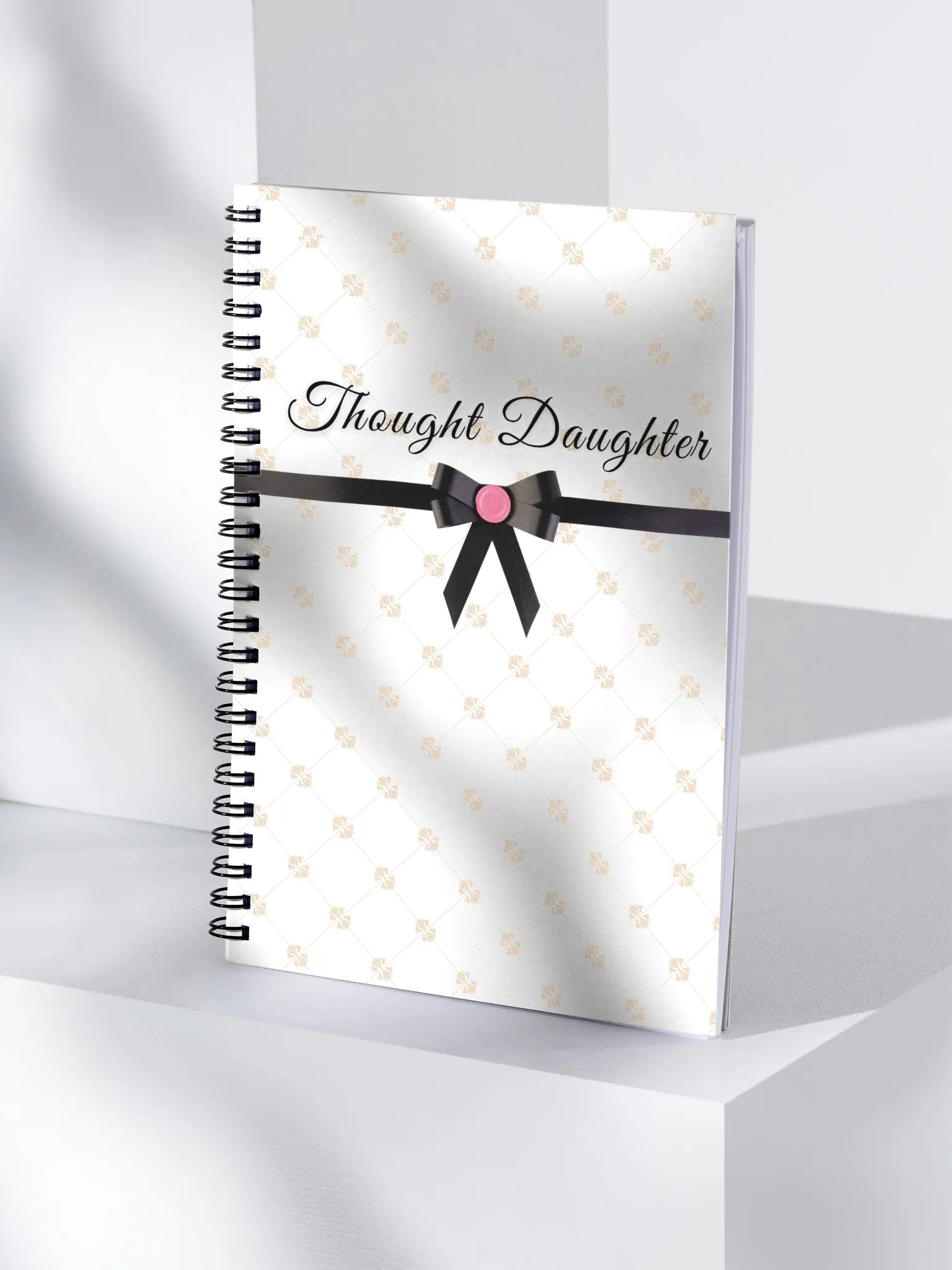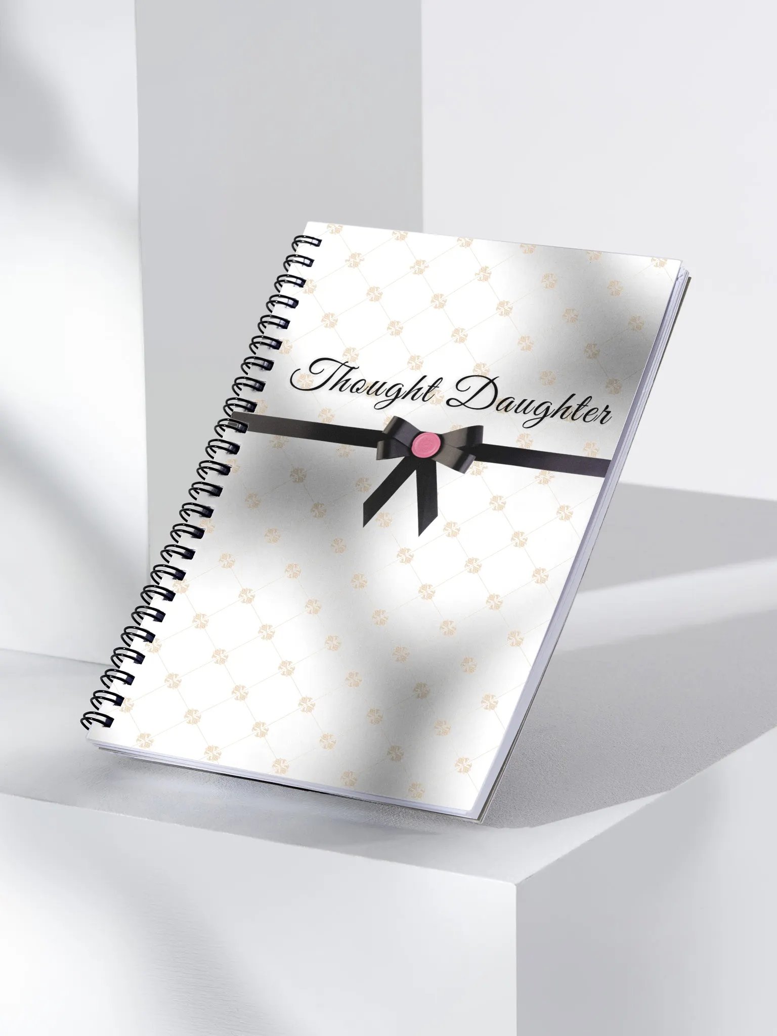 The "Thought Daughter" journal features a vintage and coquette-inspired cover design. With 140 pages, it offers convenience with its format and travel-friendly spiral binding. This charming journal serves a dual purpose as both a functional writing space and an aesthetically pleasing addition to your coffee table or room decor.